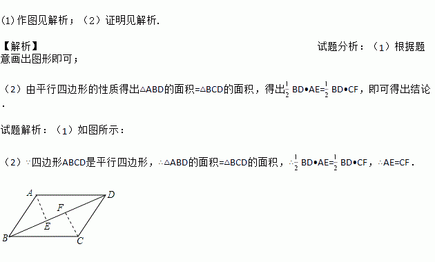 如图,BD是?ABCD的对角线,过点A作AE⊥BD,垂足为E,过点C作CF⊥BD,垂足为F.