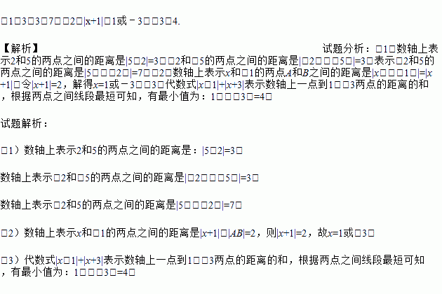(1)数轴上表示2和5的两点之间的距离是 ,数轴上表示﹣2和﹣5的两点之间的距离是 ,数轴上表示﹣2和5的两点之间的距离是 ;