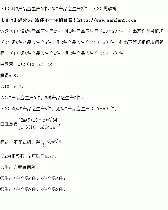 (1)若工厂计划获利14万元,问A,B两种产品应分别生产多少?