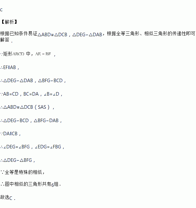 如图,矩形中,,与相交于点,则图中相似三角形共有( )