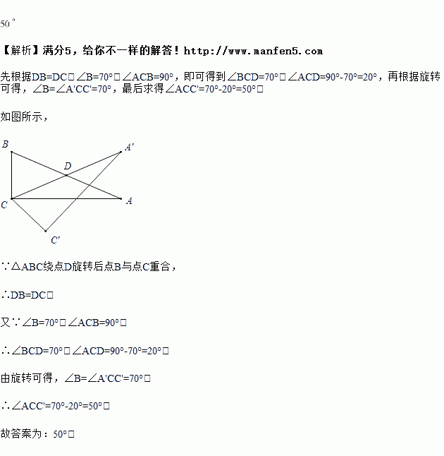 在中,,,点在边上,绕点旋转后点与点重合,点落在点,那么的度数是________.