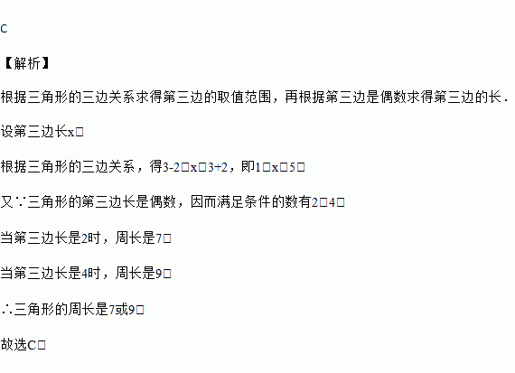 一个三角形有两边长分别为2,3,第三边长为偶数,则这个三角形的周长为( )