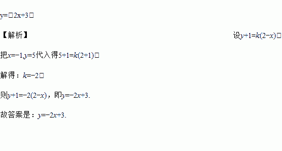 已知y+1与2﹣x成正比,且当x=﹣1时,y=5,则y与x的函数关系是____________.