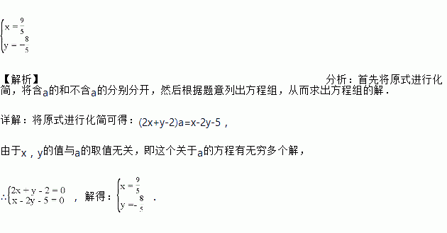 无论a取何值,关于x、y的二元一次方程(2a-1)x+(a+2)y+5-2a=0总有一个公共解,这个公共解是________.