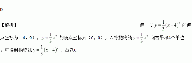 D 【解析】【解析】 ∵的顶点坐标为(4,0),的顶点坐标为(0,0),∴将抛物线向右平移4个单位,可得到抛物线.故选C.