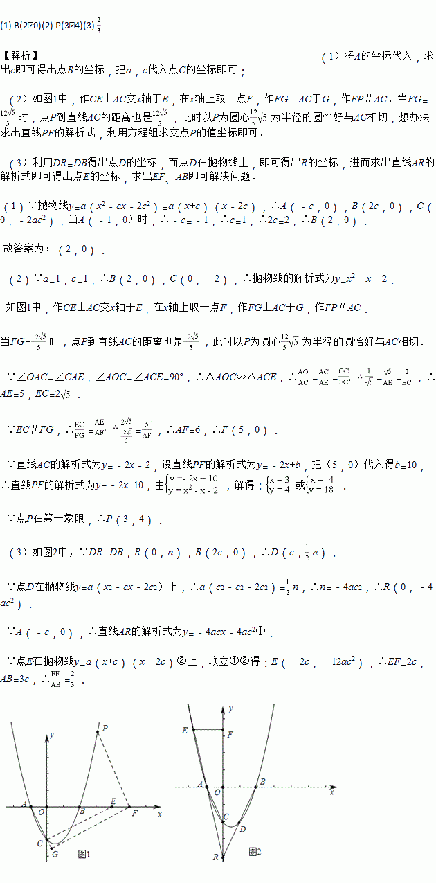 已知抛物线y=a(x2-cx-2c2)(a>0)交x轴于A、B两点(点A在点B的左侧),交y轴于点C.