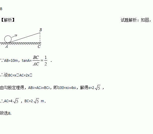 如图,一个小球由地面沿着坡度的坡面向上前进了10 m,此时小球距离地面的高度为( )