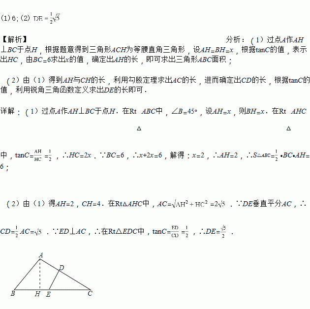 如图,已知△ABC中,∠B=45°,,BC=6.