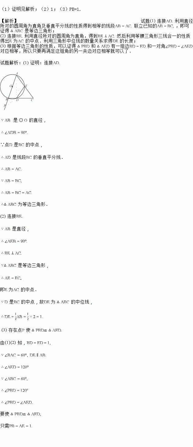 (3)在线段AB的延长线上是否存在一点P,使△PBD≌△AED?若存在,请求出PB的长;若不存在,请说明理由.