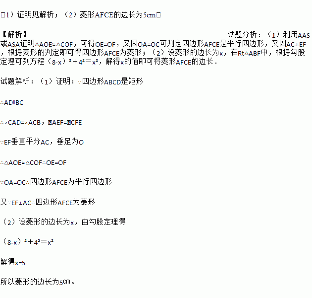(1)连接AF,CE,求证:四边形AFCE为菱形;