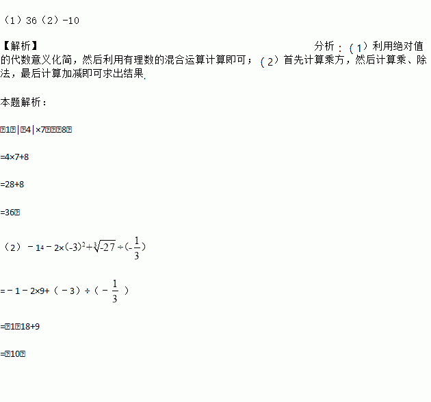 (1)|﹣4|×7﹣(﹣8);