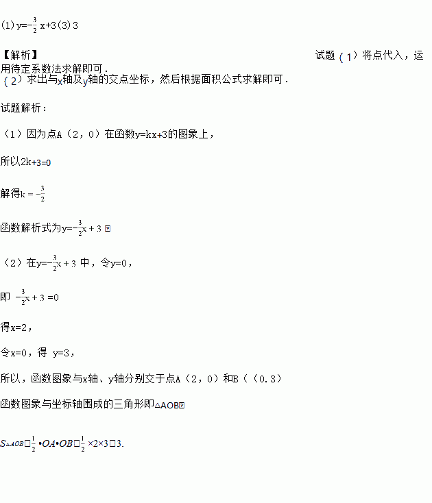 已知点A(2,0)在函数y=kx+3的图象上,