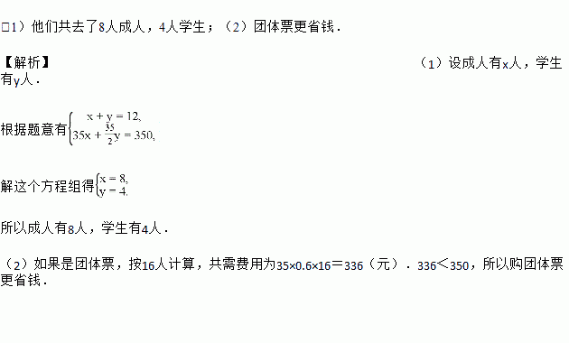 (1)他们共去了几个成人,几个学生?