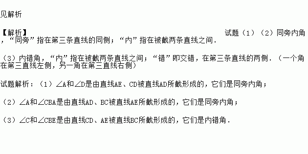 如图,BE是AB的延长线,指出下面各组中的两个角是由哪两条直线被哪一条直线所截形成的?它们是什么角?
