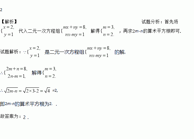 已知是二元一次方程组的解,求2m-n的算术平方根.