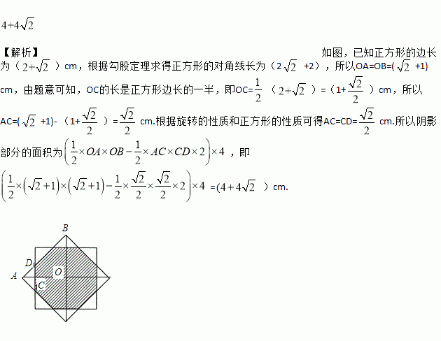 如图,将边长为()cm的正方形绕其中心旋转45°,则两个正方形公共部分(图中阴影部分)的面积为___________cm2.