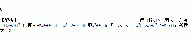 若a+b=2,ab=﹣1,则(a-b)2=______.