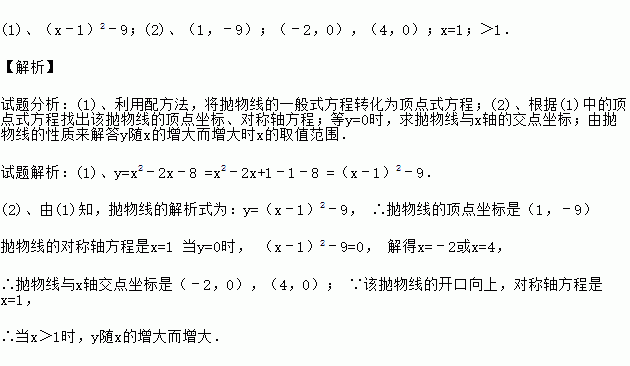 (1)用配方法把y=x2﹣2x﹣8化为y=(x﹣h)2+k形式;
