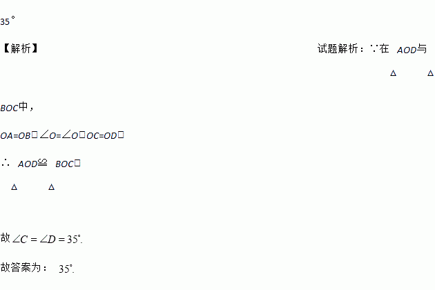 如图,OA=OB,OC=OD,∠D=35°,则∠C等于__________;