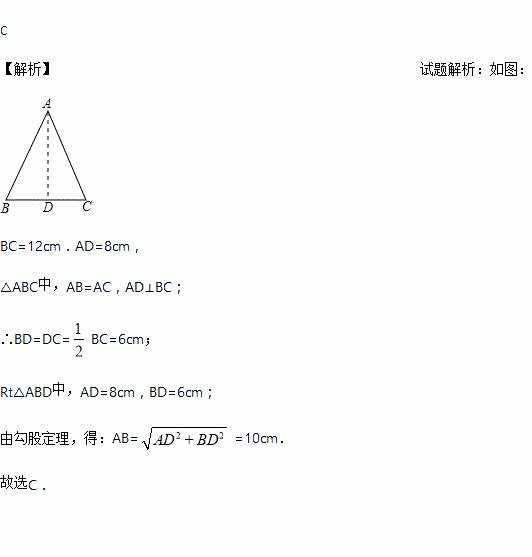 底边上的高为8,底边长为12的等腰三角形的腰长为( )