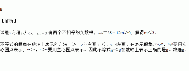 若方程有两个不相等的实数根,则m的取值范围在数轴上表示正确的是