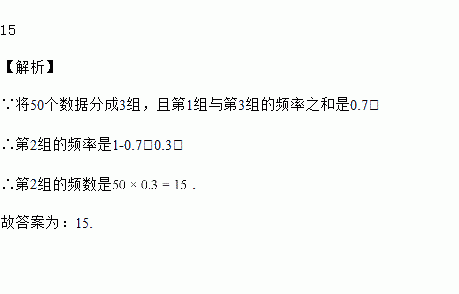 将50个数据分成3组,其中第1组与第3组的频率之和是0.7,则第2组的频数是__________.