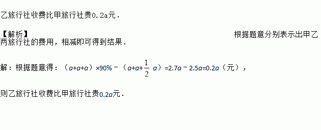 元,乙旅行社报价大人、小孩均为a元,但三人都按报价的90%收费,则甲旅行社收费比乙旅行社便宜多少元?(结果用含a的代数式表示)