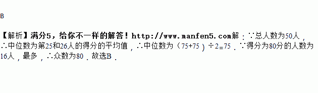 则这50名同学问卷得分的众数和中位数分别是 ( )