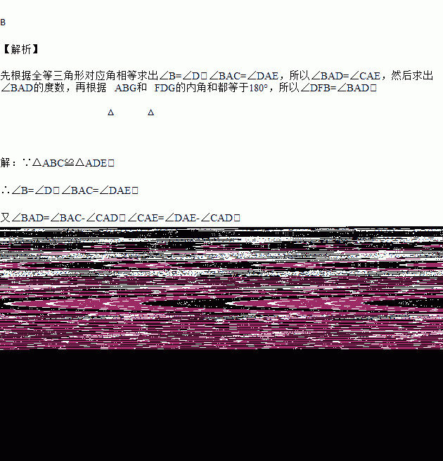 如图,△ABC≌△ADE,∠DAC=60°,∠BAE=100°,BC、DE相交于点F,则∠DFB的度数是( )