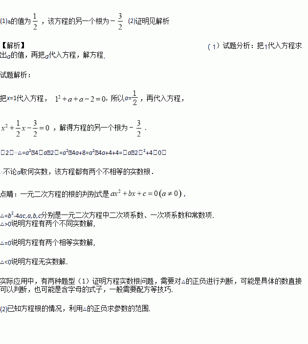 (1)若该方程的一个根为1,求a的值及该方程的另一个根;