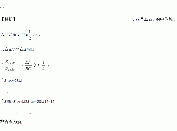 如图,EF是△ABC的中位线,将△AEF沿中线AD方向平移到△A1E1F1的位置,使E1F1与BC边重合,已知△AEF的面积为7,则图中阴影部分的面积为_____.