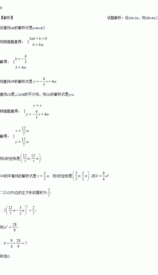 .∠AOB的角平分线与OA的垂直平分线交于点C,与AB交于点D,反比例函数