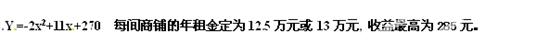(2)当每间商铺的年租金定为多少万元时,该公司的年收益(收益=租金-各种费用)最高,最高收益是多少?