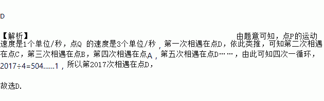 如图,正方形ABCD的边长为1,电子蚂蚁P从点A分别以1个单位/秒的速度顺时针绕正方形运动,电子蚂蚁Q从点A以3个单位/秒的速度逆时针绕正方形运动,则第2017次相遇在( )