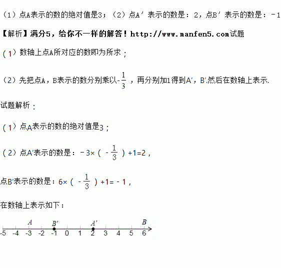 ,再把所得数对应的点向右平移1个单位长度,得到对应点A′,B′,在数轴上表示出点A′,B′.