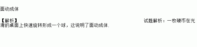 雨点从高空落下形成的轨迹说明了点动成线, 那么一枚硬币在光滑的桌面上快速旋转形成一个球,这说明了_____________.