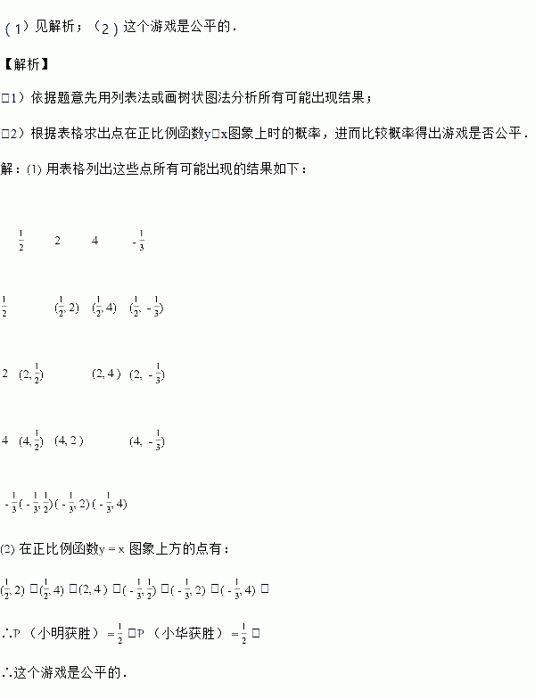 图象上方时小明获胜,否则小华获胜、你认为这个游戏公平吗?请说明理由.![]()