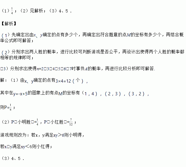 (3)定义“点M(x,y)在直线x+y=n上”为事件A(2≤n≤7,n为整数),则当A的概率最大时,n的所有可能的值为 .(不需要解答过程)