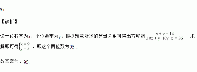 一个两位数的数字和为14,若调换个位数字与十位数字,新数比原数小36,则这个两位数是_____.
