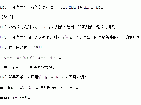 (2)若方程有两个相等的实数根,写出一组满足条件的a,b的值,并求此时方程的根.
