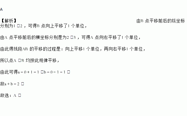 如图,,的坐标为,,若将线段平移至,则的值为( )