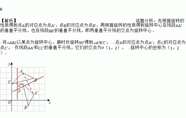 如图,将△ABC绕点P顺时针旋转90°得到△A′B′C′,则点P的坐标是( )