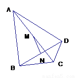 (8分).如图在四边形ABCD中,∠ABC=∠ADC=90°,M、N分别是AC、BD的中点,猜一猜MN与BD的位置关系,再证明你的结论。