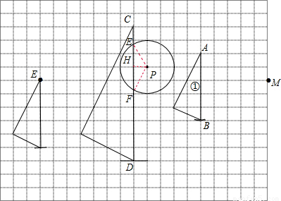 EQ在边长为1的正方形网格中,有形如帆船的图案①和半径为2的⊙P.(1)将图案①进行平移,使A点平移到点E,画出平移后的图案;