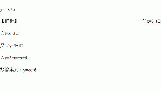 已知x=3+t, y=3﹣t,用x的代数式表示y为___________