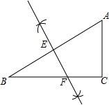 5.分析 作线段AB的垂直平分线交AB于E交BC于F,根据勾股定理得到AB=$\sqrt{A{C}^{2}+B{C}^{2}}$=5,由折叠的性质得到EF⊥AB,AE=BE=$\frac{1}{2}$AB=$\frac{5}{2}$,根据相似三角形的性质得到$\frac{EF}{AC}=\frac{BE}{BC}$,即可得到结论.