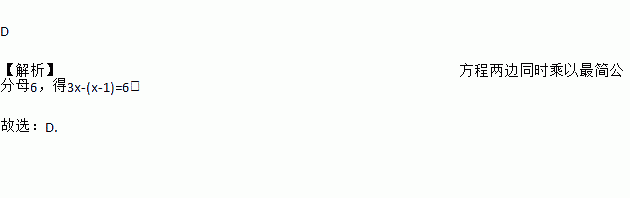 D 【解析】方程两边同时乘以最简公分母6,得3x-(x-1)=6, 故选:D.
