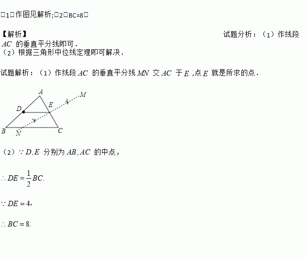 (1)请用尺规作图法作边AC的中点E,并连接DE(保留作图痕迹,不要求写作法);