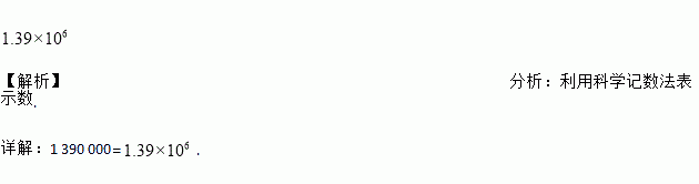 太阳的直径是1 390 000千米,则用科学记数法表示为_______________千米.