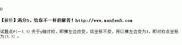 点P(-3,5)关于x轴的对称点P,的坐标是( )